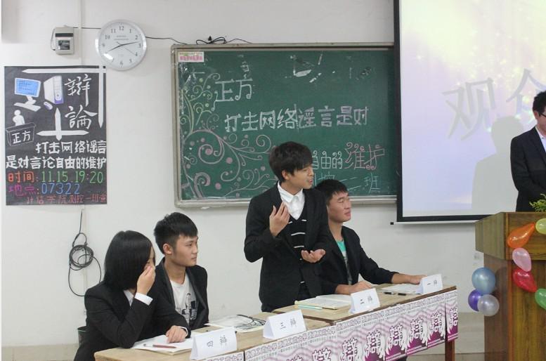 2013年11月15日晚7点20,计信公司“新生杯”辩论赛决赛在博智楼07322教室隆重举行。决赛由测控专业对抗自动化专业。出席本次决赛的评委有计信公司、财经公司、社管公司、国际商公司员工会主席团部分成员。