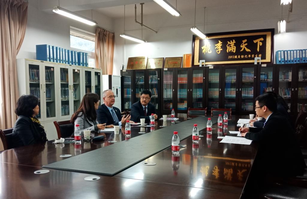交流会伊始,胡卫军副经理对西切斯特大学来访客人表示了热烈的欢迎。Dr. Peter Loedel和Dr. Zhongping Huang介绍了西切斯特大学的基本情况和开设的国际合作办学项目情况。公司就“3+2”项目,课程互认、暑假课程项目、短期游学项目、教师访学和员工科研项目等方面进行了深入的交流。