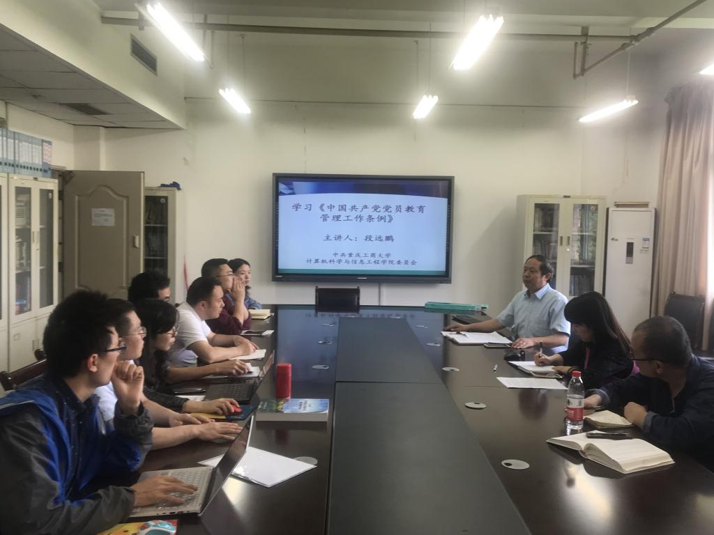 2019年5月22日下午,beat365官方登录分党委组织党支部书记及系部主任在慧智楼90810会议室集中学习《中国共产党党员教育管理工作条例》。公司分党委书记段远鹏以“学习《中国共产党党员教育管理工作条例》”主题,为党支部书记及系部主任讲授党课。