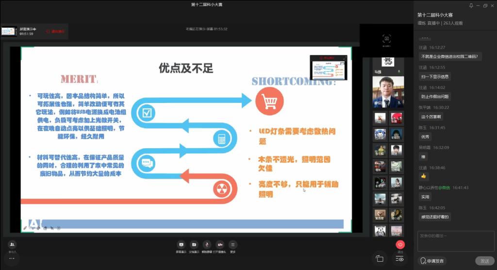 为提升同学们的专业兴趣和创新思维,培养同学们的团队精神和动手实践能力,进一步发现科技之美,beat365官方登录、beat365官方登录于6月5日15:00通过企业微信线上举办了第十二届科技创新小发明决赛。计信公司杨永斌副教授、杨艺副教授、范兴容博士担任本次比赛评委,公司分党委副书记陈亚惠,学工办副主任向巧应邀出席本次大赛。