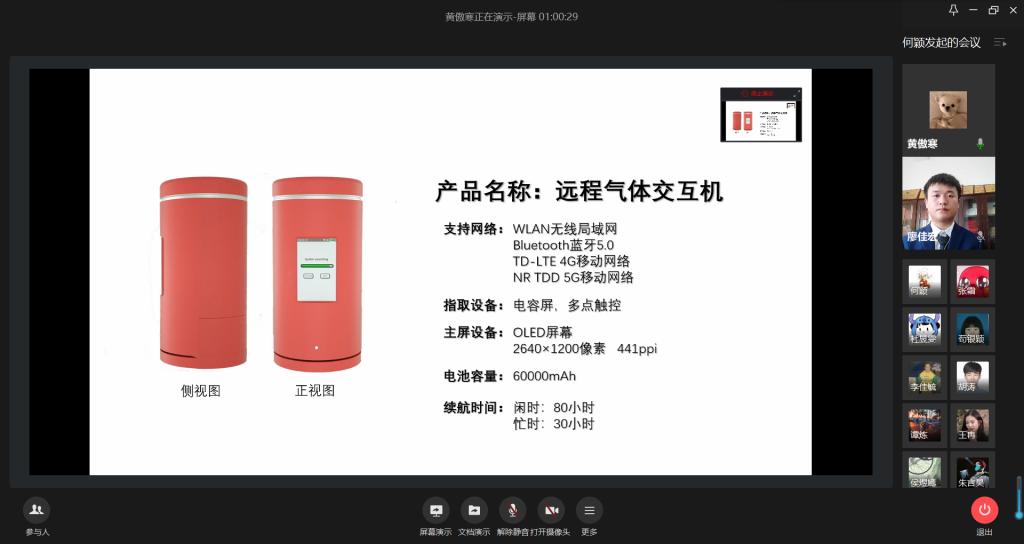大赛初赛共收到来自机械工程公司、环境与资源公司、外语公司、会计公司、经济公司、通识公司等7个公司的作品。比赛分为创意组和实物组,经过初赛的激烈角逐,实物组8组,创意组5组共13个小组闯进决赛。决赛现场由组长在限定时间内对作品或创意进行在线演示,由评委现场点评打分,最终智能家居设计、智能球型机器人并列荣获实物组第一名,远程气味交互机(气体电话)获得创意组第一名。