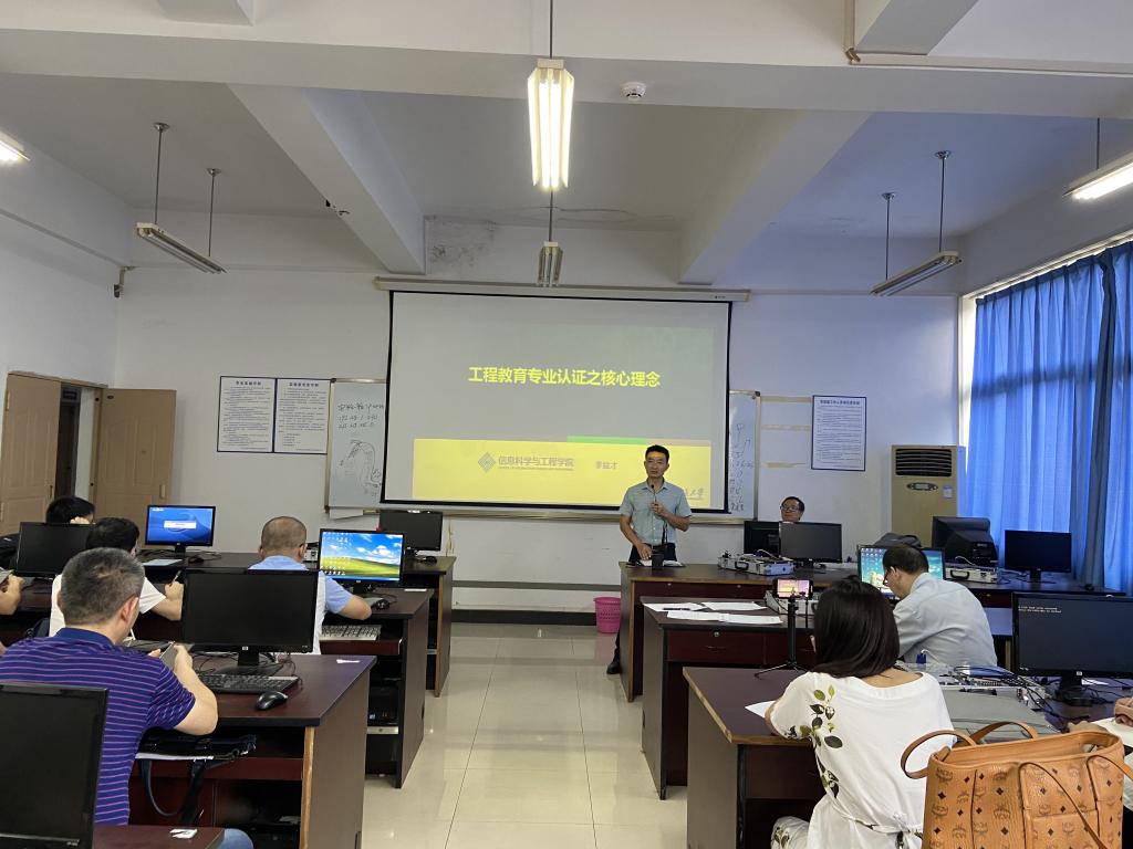 为了全面推动工科专业工程教育专业认证工作,提高公司办学水平和人才培养质量,2020年9月8日上午,公司在睿智楼10304举办了“工程教育专业认证之核心理念”学术讲座。本次讲座特邀重庆交通大学信息科学与工程公司副经理李益才教授作为主讲嘉宾,公司副经理杨光祥教授、计算机科学与技术系主任、电子信息工程系主任、自动化和测控专业系主任及各系50余名专业教师参加了讲座。