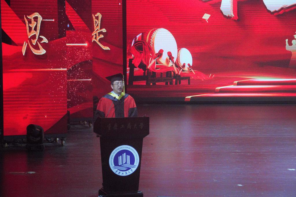 最后,唐亮贵讲话。他为即将踏上人生新征途的莘莘学子们送上了美好的祝福,回顾了同学们四年老员工活的绚丽与精彩。他对全体2021届毕业生提出了四点希望:一是不忘初心,牢记使命。希望同学们守初心行稳致远,担使命进而有为。始终明确自己从何处来、要向何处去。要胸怀祖国和人民,到祖国最需要的地方去,为国家富强、民族兴旺,而不断学习、努力工作。二是知行致智,行稳致遠。希望同学们在面对困难和挫折时,做到知行致智,受挫而不短志;在面对收获和成功时,做到行稳致遠,处优而不养尊。在坚强的人格、顽强的努力和从容的心境中,体会生活的价值和真谛,寻找生活中的真、善、美。三是团结奋进,砥砺前行。希望同学们无论何时何地,都要充分认识到团结奋进的重要性。在未来所工作的单位里、一起奋斗的团队中要顾大局、成大事、担大任,团结奋进,砥砺前行。四是仰望星空,脚踏实地。希望同学们要拥有自己的梦想,志存高远,要矢志不渝地追求自己的梦想,脚踏实地,“求真学问、练真本领”,“把自己的理想同祖国的前途、把自己的人生同民族的命运紧密联系在一起”,在实现中国梦的生动实践中放飞青春梦想,书写人生华章。他期待同学们在beat365官方登录70周年校庆之日载誉归来!