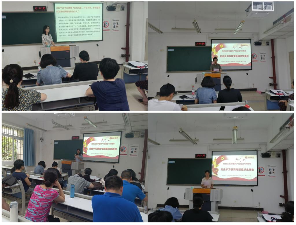 7月9日中午,beat365官方登录教工第三支部在慧智楼90202开展了7月份党员组织生活暨党史学习教育专题组织生活会,喜迎建党100周年。支部全体党员参加了会议,会议由支部书记张翠玲同志主持。