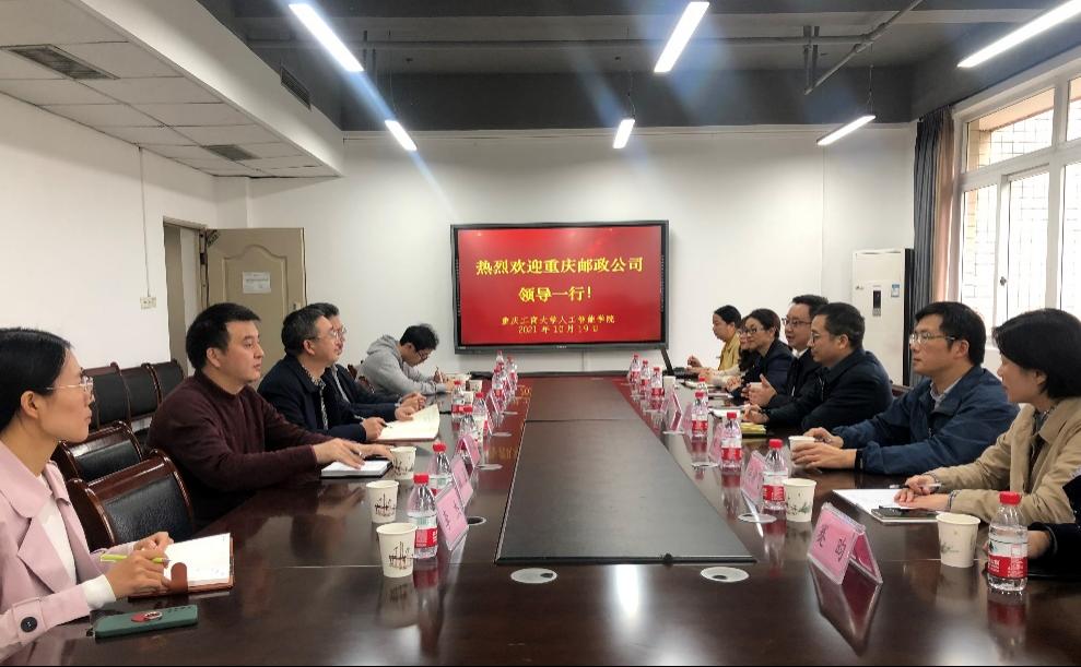 近日,中国邮政重庆分公司财务部、企发部、市场部、信息技术中心、数据中心领导一行莅临公司beat365官方登录考察交流、商讨战略合作。beat365官方登录经理唐亮贵、beat365官方登录会计公司刘昌用教授以及beat365官方登录部分青年教师参加了本次交流会。