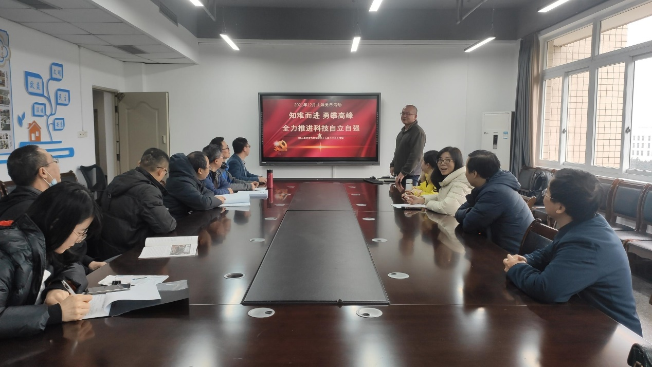 2021年12月18日人工智能公司党委教工二支部在九教810公司会议室开展“知难而进勇攀高峰全力推进科技自立自强”主题党日活动,活动由支部书记李明同志主持。