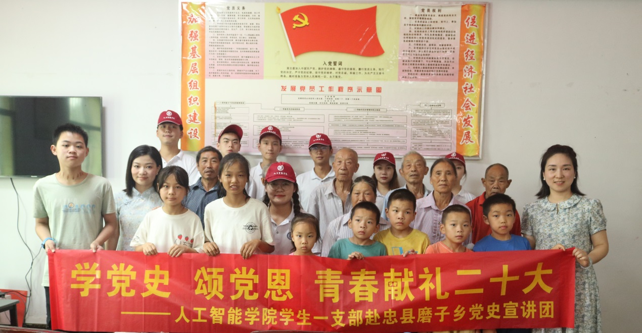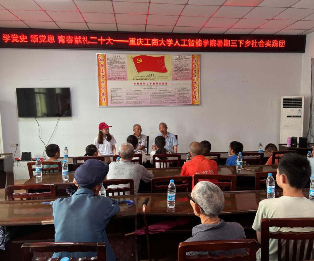 集中宣讲以“学党史、颂党恩、青春献礼二十大”为主题开展。实践团邀请了当地两名在党50年以上的老党员讲述了自己的入党故事,现场40余名听众无不被两位老人深厚的爱国情感和对党的无限忠诚所感动。谈到对下一代的期许时,两位老党员希望青年人要珍惜韶华,秉承党的优良传统,主动扛起责任与使命,为实现中华民族伟大复兴而不懈奋斗。在此感召下,两位村民主动分享了脱贫攻坚以来,自己生活发生的翻天覆地的变化,感叹能有如今的幸福生活得益于中国共产党的坚强领导。面对现场10余名留守儿童,实践团为他们讲述了《小萝卜头的故事》,一番生动的讲解后也激发了现场小朋友的热情,他们也纷纷分享了自己所熟知或了解的革命先烈的故事。最后,在《没有共产党就没有新中国》的集体大合唱中,一场深刻的、互动式的宣讲活动圆满结束,实现了党史学习与教育的双向奔赴。