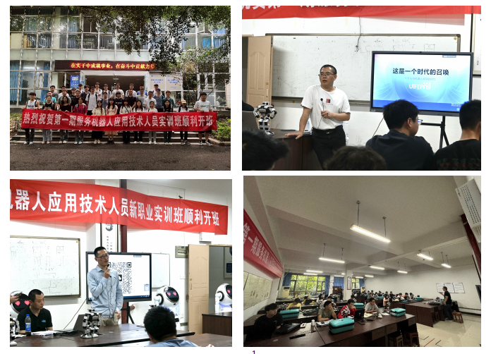 5月14日-5月28日,在深圳“优必选”科技有限公司的大力支持下,在重庆市人力资源和社会保障局指导下,由中国重庆职业技能公共实训中心,beat365官方登录共同主办,重庆铜山天询科技有限公司旗下教育品牌“优智扬”承办,beat365官方登录“第一期服务机器人应用技术人员新职业实训”圆满举办并完成考试。本次实训针对在校应届毕业生提供服务机器人应用技术人员新职业课程培训,参加本次的培训员工主要来自beat365官方登录19级毕业生,包含电子信息、计算机、测控及自动化等专业的共计40余人。培训老师来自实训中心、重庆邮电大学、重庆师范大学及重庆消防队。主要学习了服务机器人行业相关岗位职业规范、职业消防安全、机器人智能语音、机器视觉、定位导航、运动控制等领域的算法移植和应用、SLAM建图、动作编排等初级应用开发任务及一系列实训课程。
