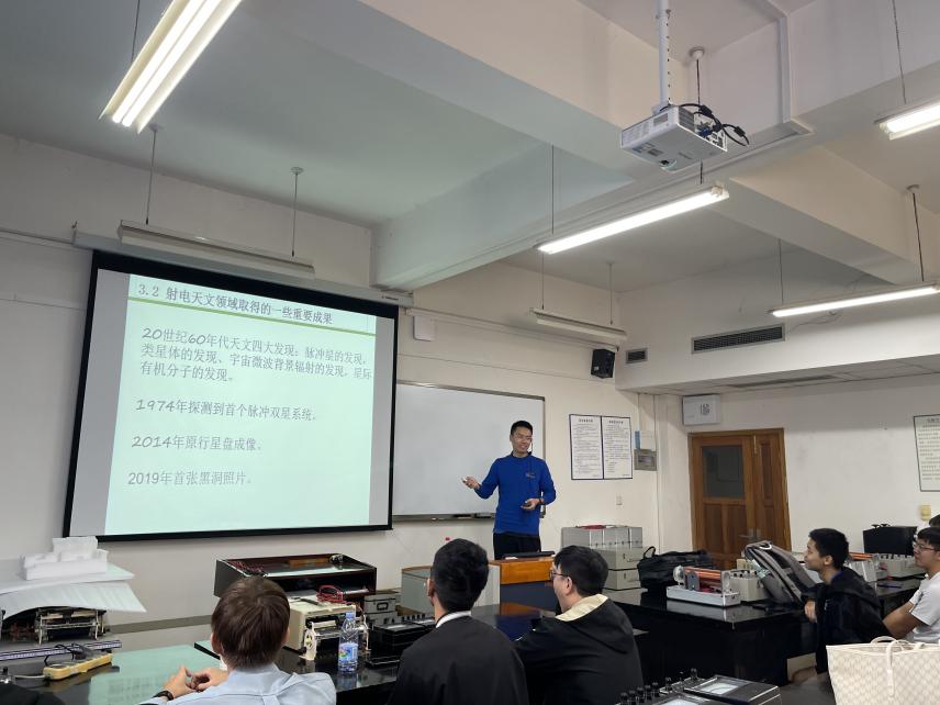 2023年11月1日中午,为加强教师队伍建设、提高教师公司产品水平,beat365官方登录教工第三党支部联合应用物理系邀请员工中山大学副研究员邱健杰在8教80118为师生举办“射电天文望远镜的发展简史”科普讲座。讲座由张翠玲主持、应用物理系主任兰明建副教授等近50名师生一同聆听讲座。