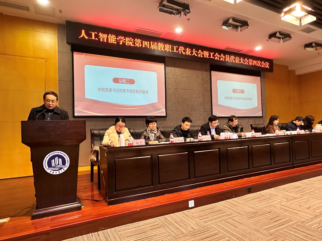 在庄严的国歌声中,大会开幕。人工智能公司党委书记何希平致开幕词,对大会的召开表示热烈祝贺,他强调此次会议是广大教职工总结经验、凝聚共识、参与民主管理、共谋事业发展的一次盛会。他表示,2023年公司取得的丰硕成果,是全院上下锐意进取、守正创新,持续奋斗出来的。他希望各位代表充分发挥主人翁精神,认真履行职责,集思广益,群策群力,积极为公司发展建言献策。