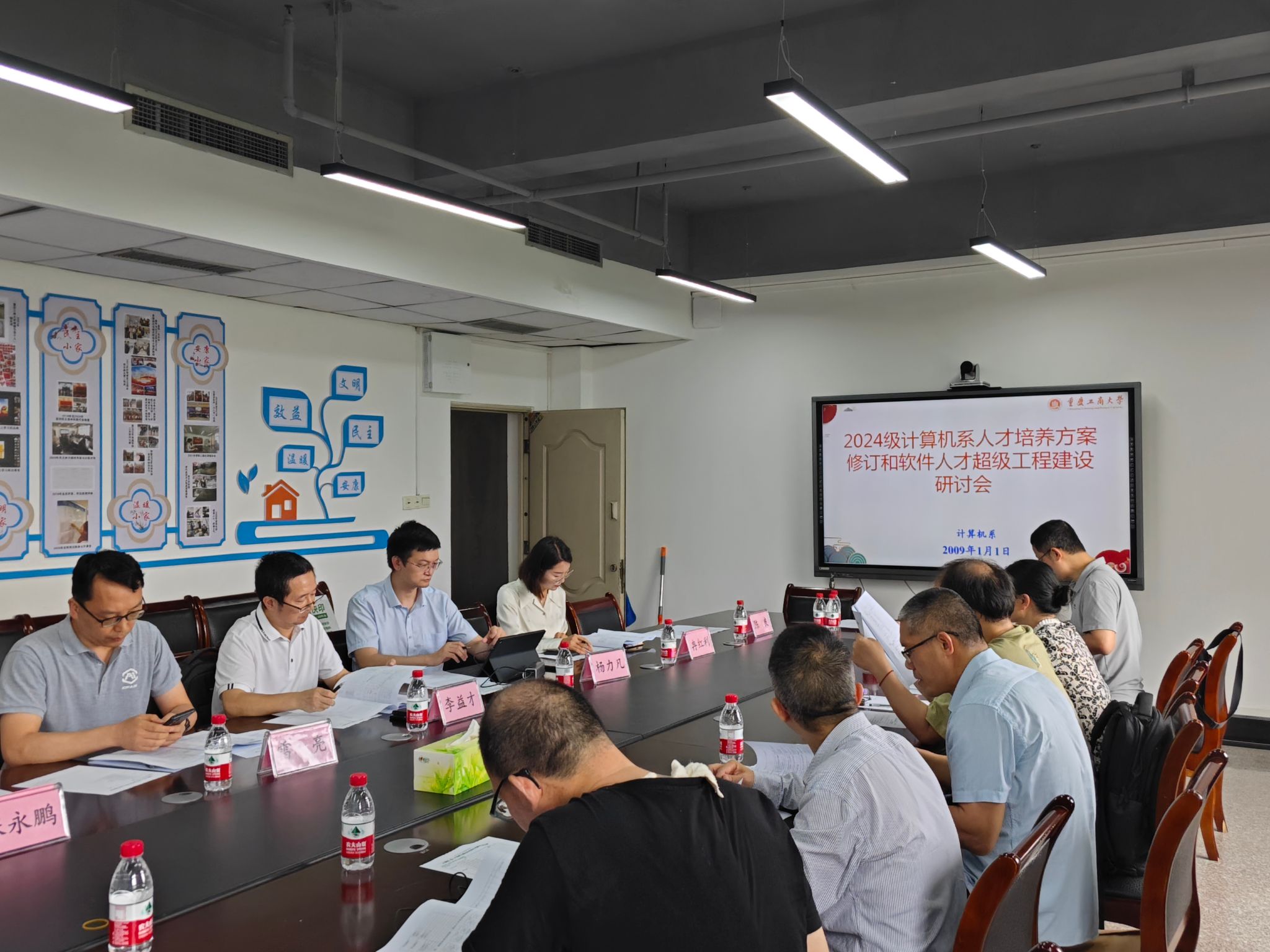 会议重点讨论了人才培养方案的修订要求、课程设置、专业目标,以及毕业要求分解和课程矩阵等几方面。同时,与会人员就软件人才超级工程建设展开了深入探讨。朱超平老师汇报了新版人才培养方案的修订进展,重点阐述了培养目标、专业特色、课程体系等方面的调整。与会专家和教师就如何进一步优化方案展开了热烈讨论。
