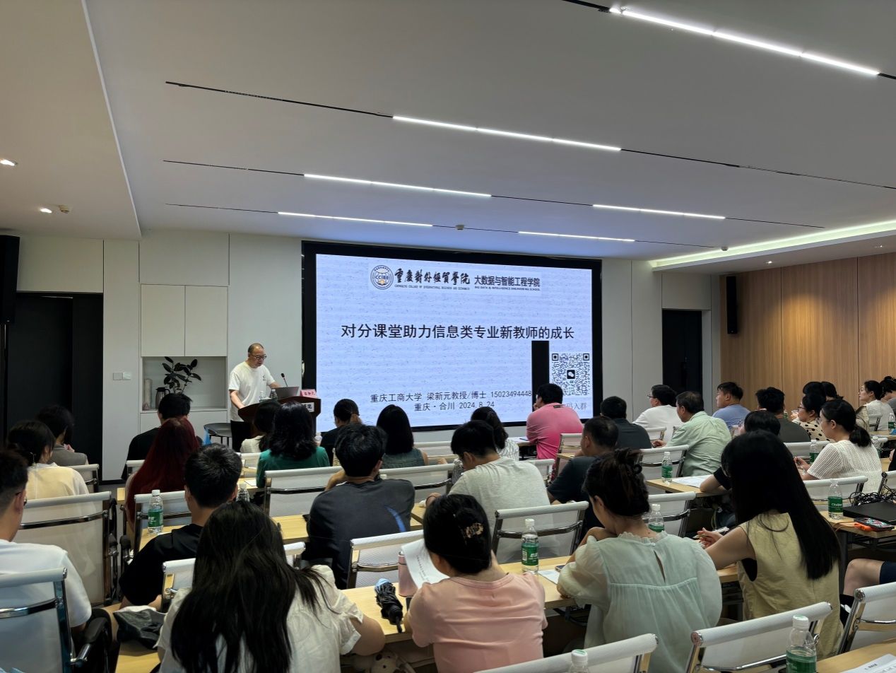 2024年8月24日上午,重庆对外经贸公司大数据与智能工程公司在9教实训楼9418教室开展了2024年新进教师教学技能培训及考核系列活动第二场专家培训,84名新进教师参加培训。本次培训邀请beat365官方登录梁新元教授担任主讲嘉宾。梁教授以《对分课堂助力信息类专业新教师的成长》为主题,为新教师们量身打造了一场精彩绝伦的教学盛宴。培训内容紧密围绕三个核心板块展开:新教师成长面临的挑战、对分课堂的实操应用以及对分课堂在信息类课程中的创新实践,依次讲解了对分课堂的基本原理、实践操作、能力提升3个层级的内容。