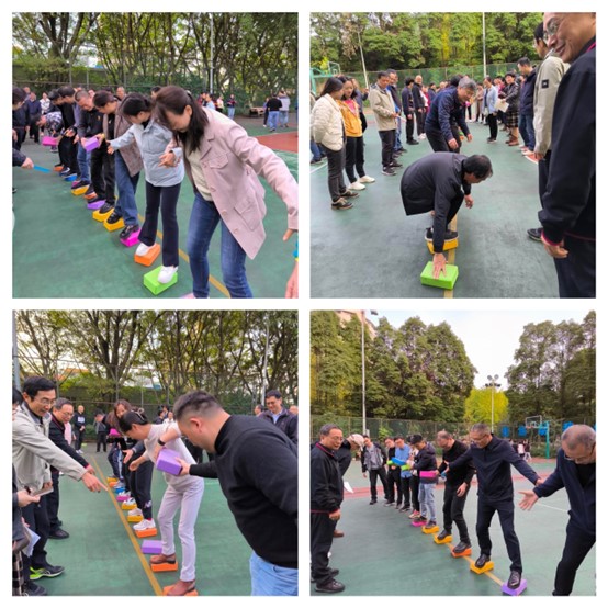 当天,120余位没有其它工作任务的老师都参与到活动中,在9教对面周末文化广场旁篮球场进行了热烈和充满着欢声笑语的比赛。比赛由老师按抽取到的手环颜色分组,每组10人,同时参加摸石头过河砖趣味运动和珠行万里U型槽团建拓展活动,按两个活动的总积分排名确定获奖等级。