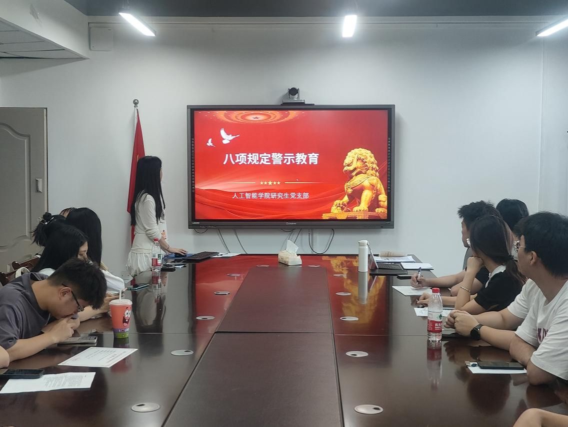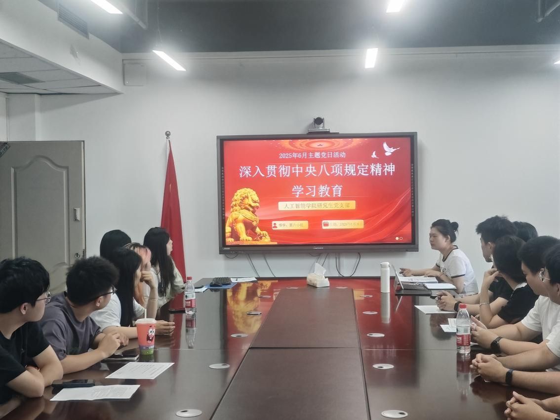 2025年6月16日下午14:30,beat365官方登录研究生党支部在慧智楼90810会议室开展了主题为“深入贯彻中央八项规定精神学习教育”的6月主题党日活动。本次活动由党支部书记邹润玲主持,全体党员同志参加。