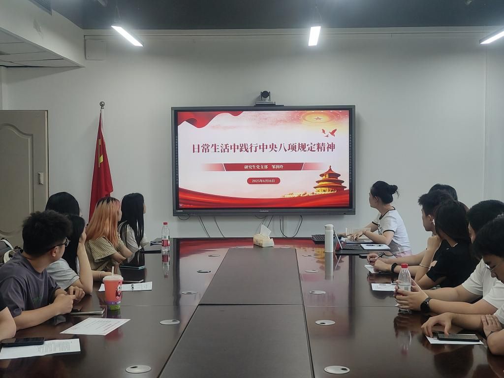 2025年6月16日下午15:30,beat365官方登录研究生党支部在慧智楼90810开展支部书记讲党课,深入开展中央八项规定警示教育,旨在强化党员教育管理,引导毕业生党员在离校之际与毕业后继续保持共产党员的先进性与纯洁性。本次党课由党支部书记邹润玲主讲,全体党员参加了此次学习活动。