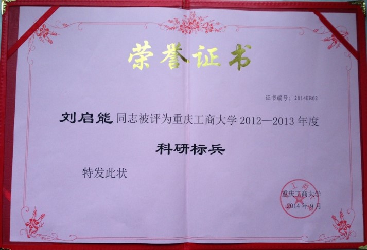 除此之外,2013年曹晓丽老师获得重庆市科学技术二等奖。