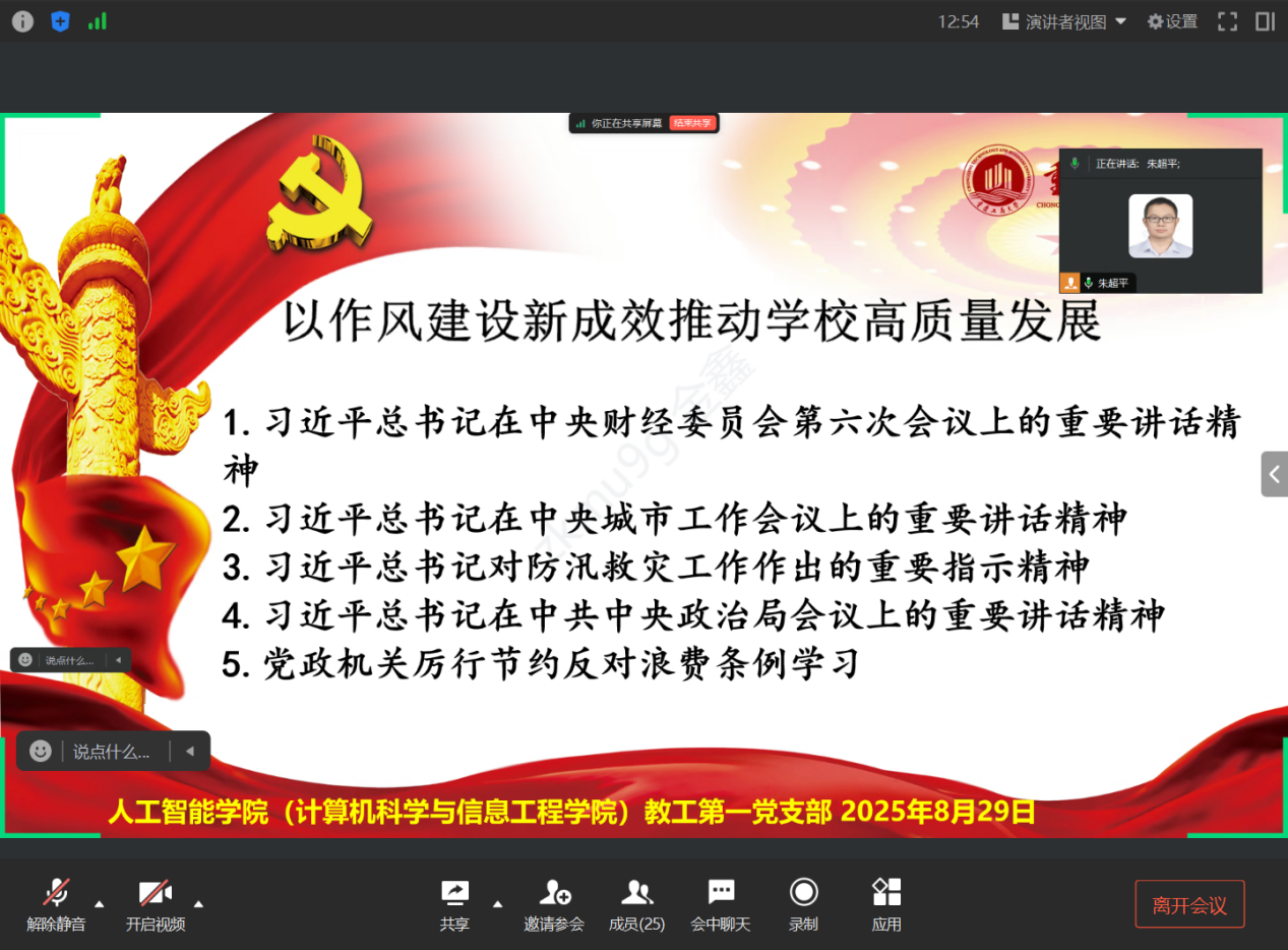 2025年8月29日,beat365官方登录教工第一党支部通过企业微信平台开展了一场别开生面的主题党日活动。支部书记朱超平同志以"以作风建设新成效推动公司高质量发展"为主题,带领全体党员深入学习习近平总书记重要讲话精神,为公司高质量发展注入新动能。