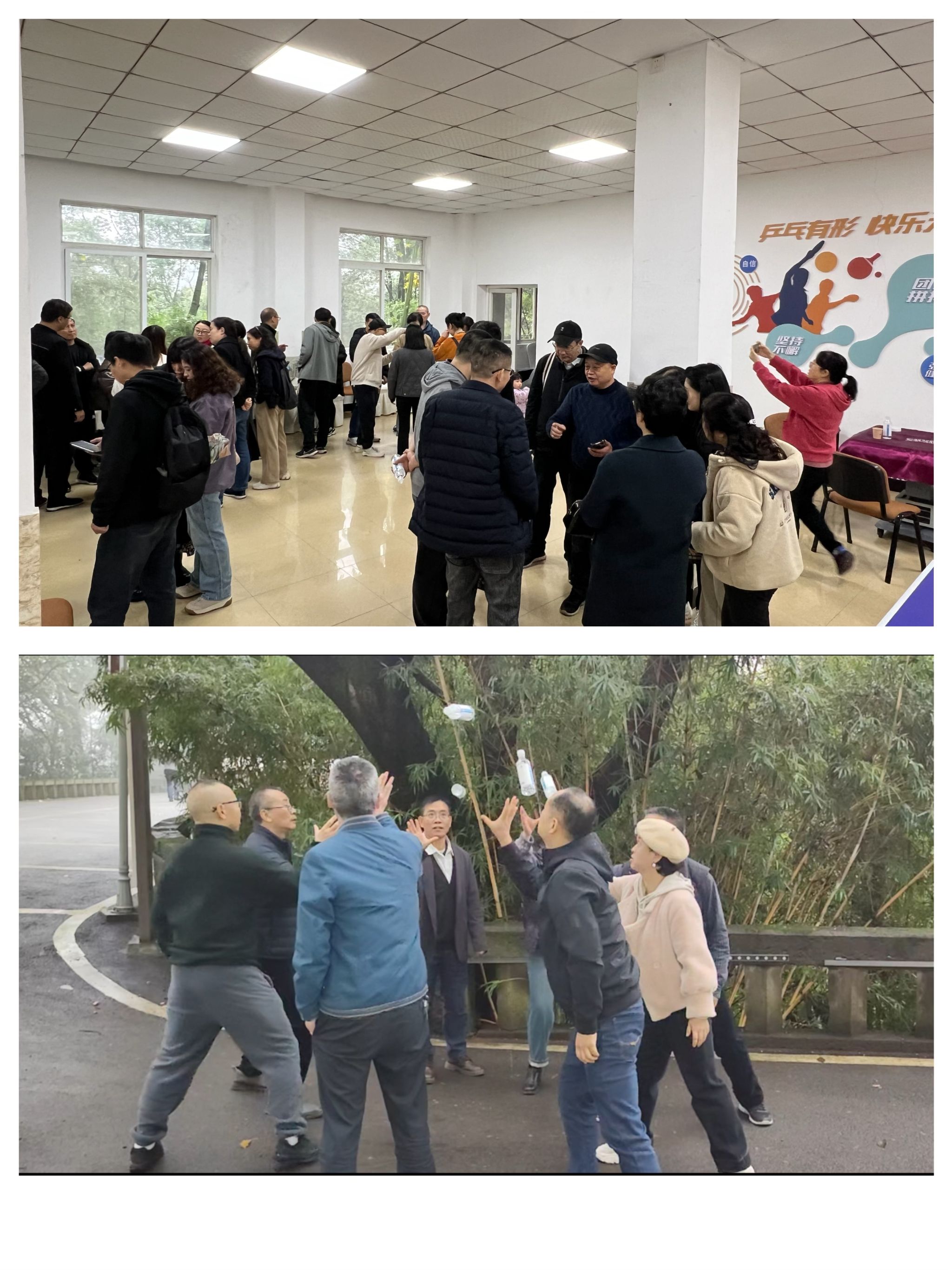 首先进行的是“A4纸运乒乓球”,比赛采用接力方式,团队两人一组,用A4纸将乒乓球运送到指定位置后返回将纸和乒乓球交给下一对队员,运送过程中纸要保持平坦,直至全部队员完成计时结束,用时越少积分越高。随着裁判员一声令下,两位老师小心翼翼用A4纸抬着乒乓球走向终点,由于纸不能折叠,要将乒乓球倒入纸杯里不容易,有时候4、5次都倒不进去,为了抓跑掉的乒乓,甚至把球桌都推动了,引得阵阵爆笑,欢乐的氛围弥漫在大厅。
