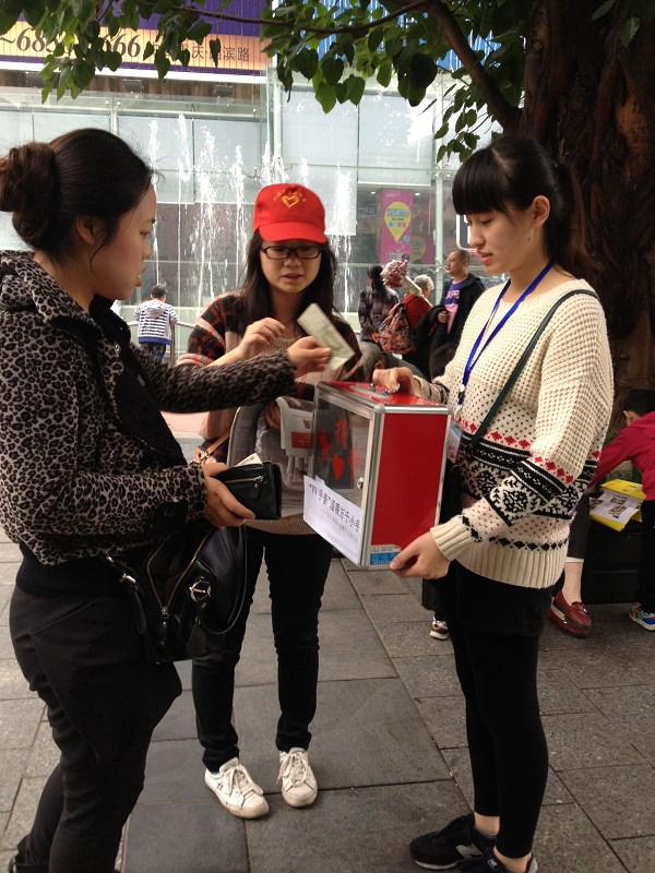 2013年11月9日,beat365官方登录beat365官方登录义工志愿者协会在沙坪坝举行了义卖报纸活动,其目的是为了给雅安、彭水贫困地区的孩子们筹款,为了让这些买不起手套的孩子能在冬天能戴上手套,让他们的小手不再冰冷,让他们的心不再孤单。计信义协的干部干事积极参加了这次本次活动。
