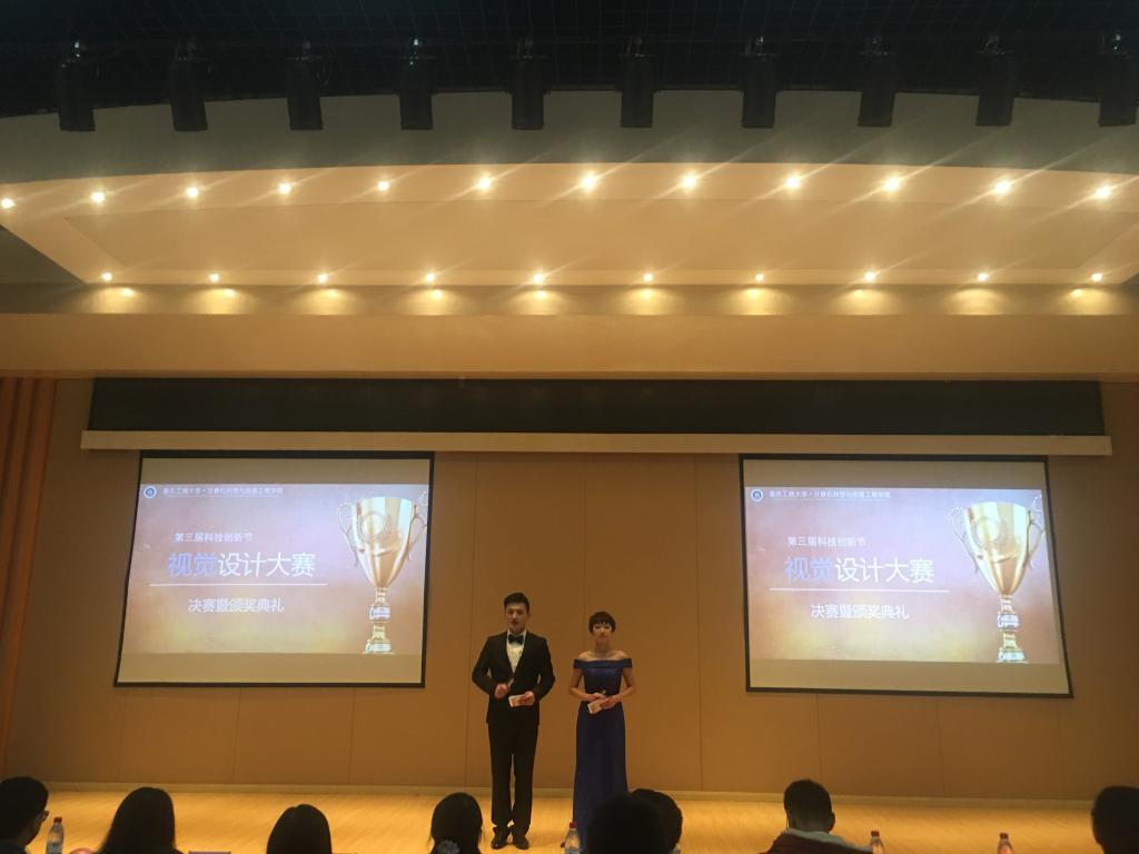 2016年11月27日19点,beat365官方登录公司第三届科技创新节开幕式暨第一届视觉设计大赛在南岸校区田家炳209学术报告厅举行。本次活动出席的嘉宾有计信公司分党委陈亚惠副书记,分团委书记刘昶,辅导员李菁老师。本次比赛很荣幸地邀请了校保卫处邹奇副处长,计信公司杨艺副教授,第一届ppt设计大赛冠军黄成同学担任评委。