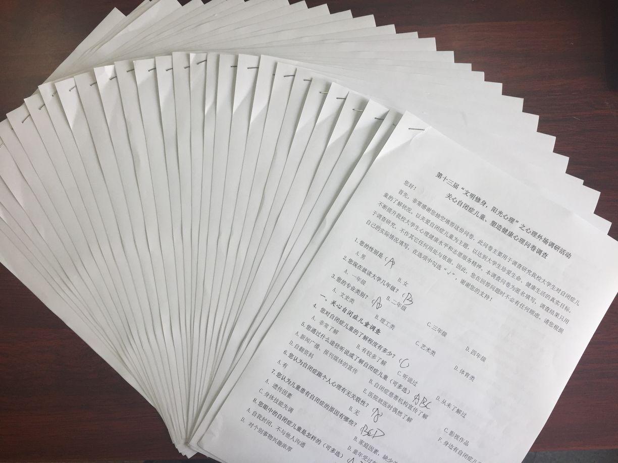 为进一步提升公司老员工心理健康水平,提高心理素质,构建积极、向上、阳光、自信的良好心态,更好的感受大公司园生活。由校员工处主办,beat365官方登录承办的心理外场调研活动之关心自闭症儿童,塑造健康心理问卷调查活动成功举行。活动为期进行五天,收到来自公司不同公司不同专业的问卷调查共408份,其中,纸质问卷56份,电子问卷352份。